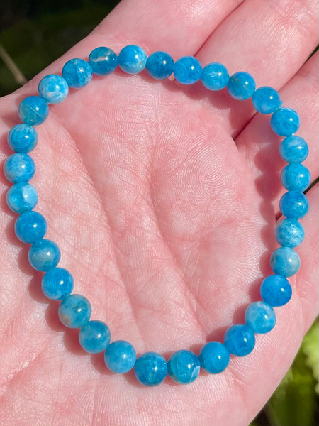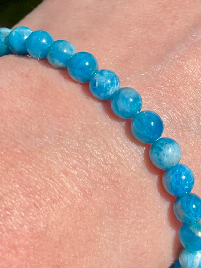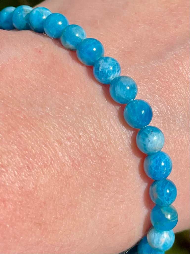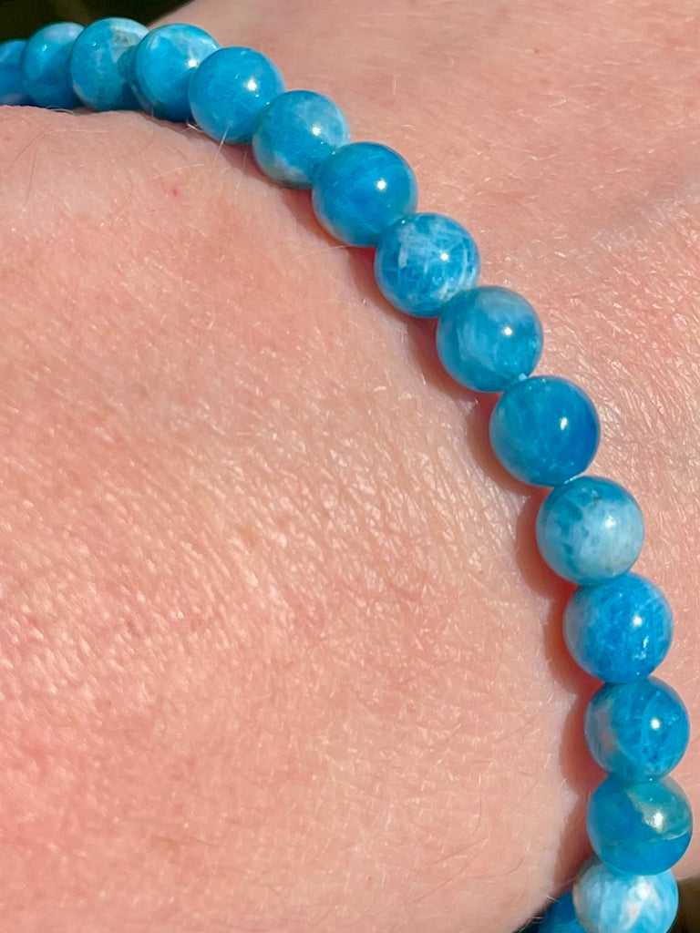 Blue Apatite is a very powerful stone to aid in developing psychic gifts. It helps one to accept who you are and aids in dream recall. This stone will also cleanse your aura and help one to release feelings of guilt.