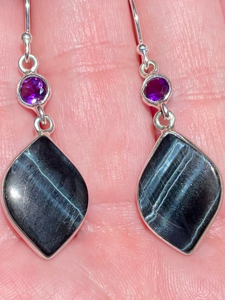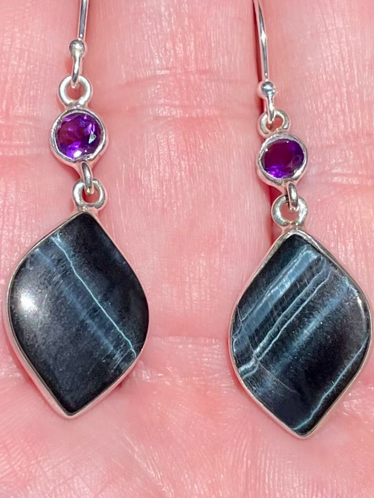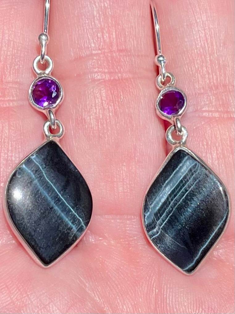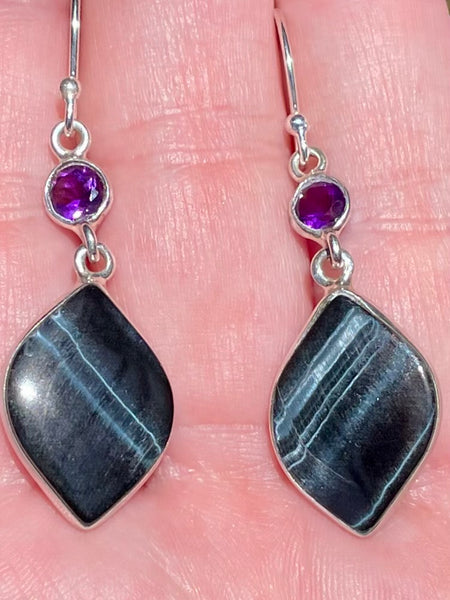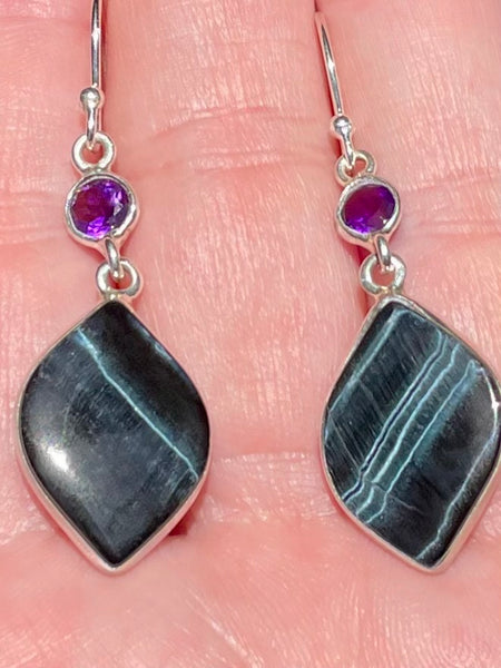 Blue Tigers Eye (Hawk’s Eye) and Amethyst Earrings - Morganna’s Treasures