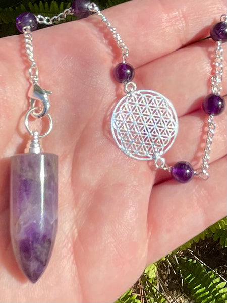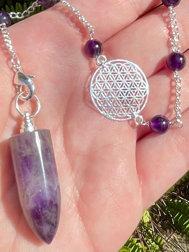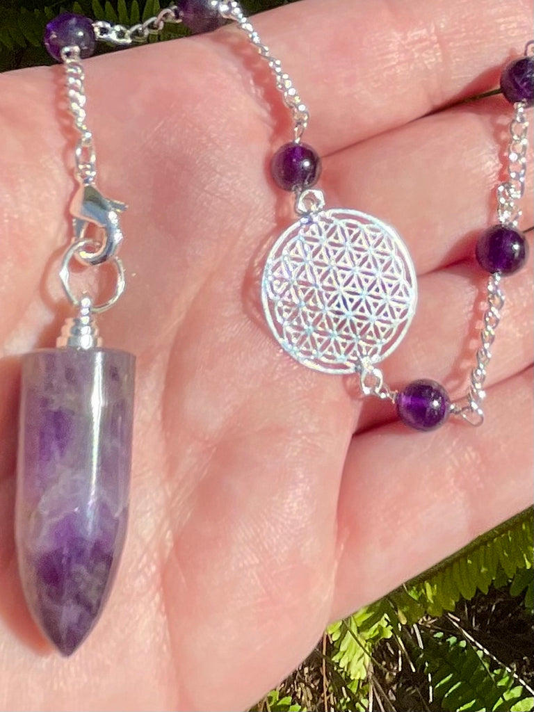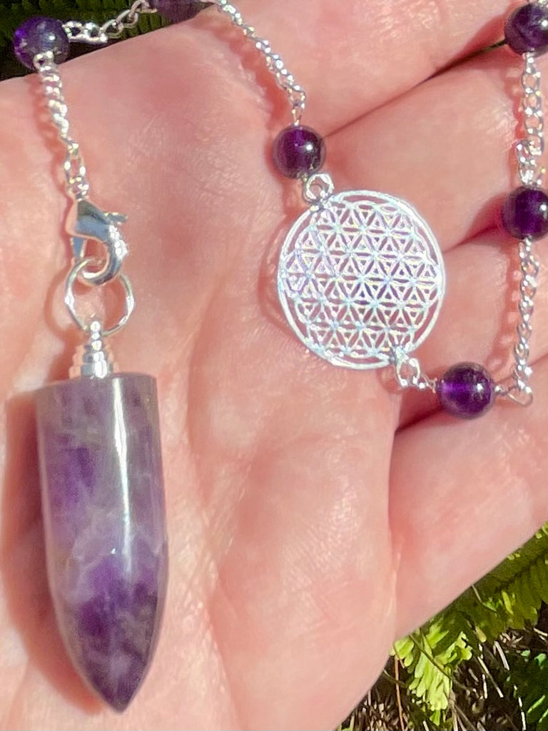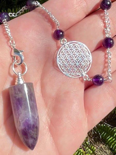 Purple Amethyst Flower of Life Pendulum