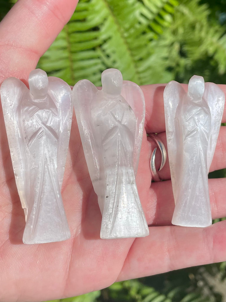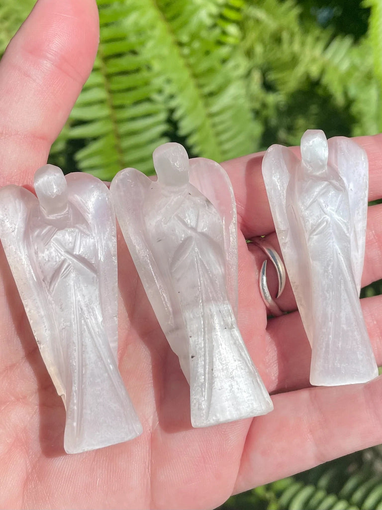Selenite evokes protection from the Angelic realm and can create a shield from negative influences. It can bring deep peace and a sense of tranquility. Selenite is a form of Gypsum which is used for good luck and protection. This stone can remove energy blockages. It can heal and repair on a cellular level. Selenite can also be used to strengthen the memory.