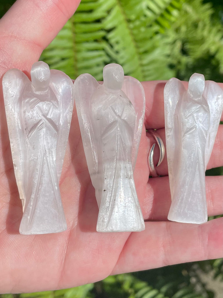Angels measure 2 and 1/2 inches. As each stone is unique, colors may vary.