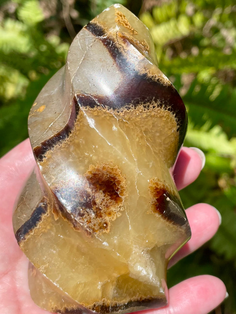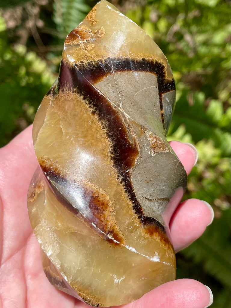 Septarian also called Dragon Stone is a great stone to wear if you speak in public, as it gives you confidence and allows you to gain an audience’s attention. It is a grounding stone that allows for better tolerance and patience, as well as emotional flexibility. It is a powerful stone to help center you and provide calm and peace.