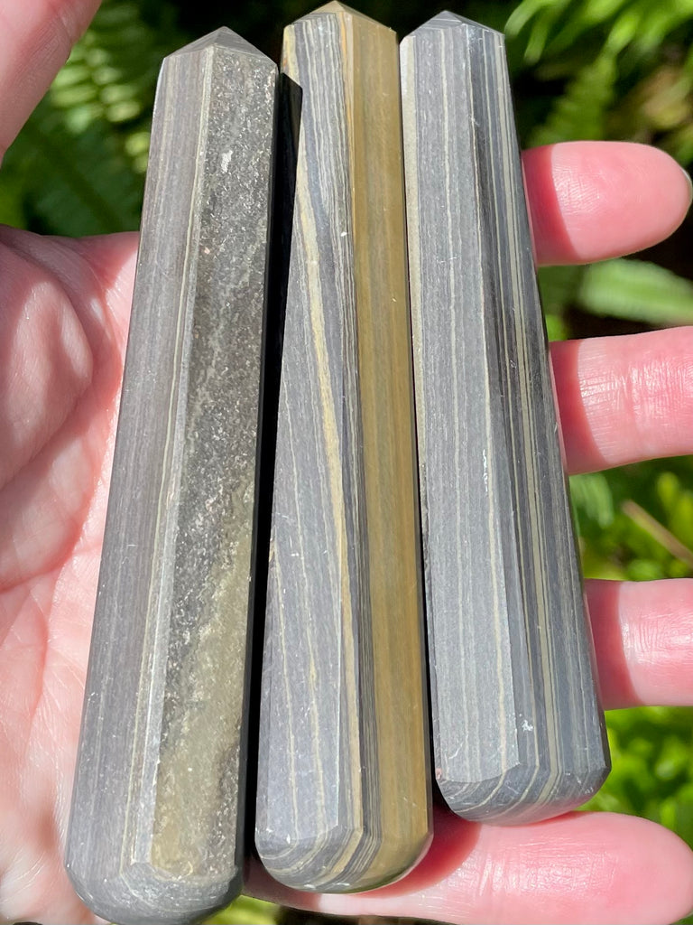 Crystal Wand measures approximately 4.5 to 5 inches. As each stone is unique, colors may vary.