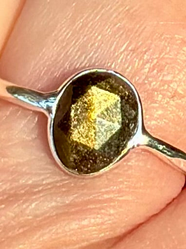 Faceted Gold Sheen Obsidian Ring Size 8