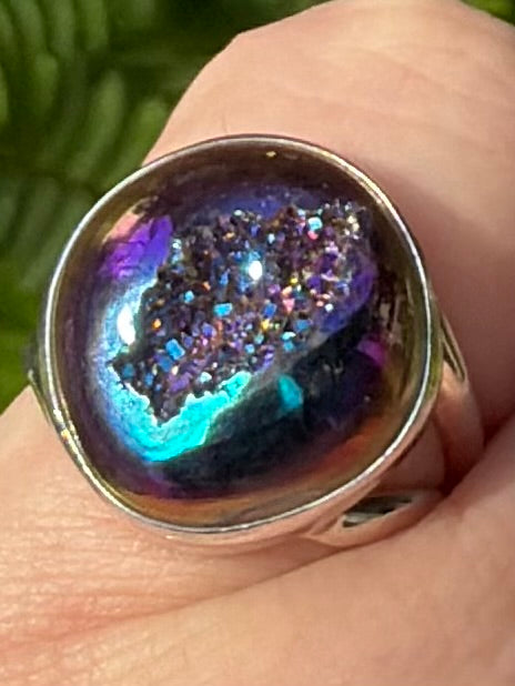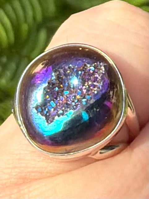 Titanium Aura Quartz Druzy Ring Size 6