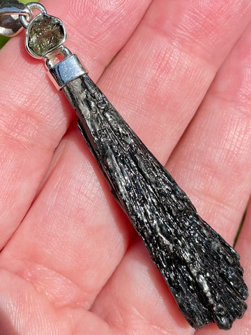 Rough Black Tourmaline and Herkimer Diamond Pendant