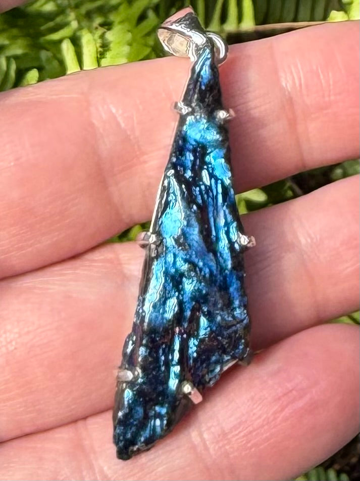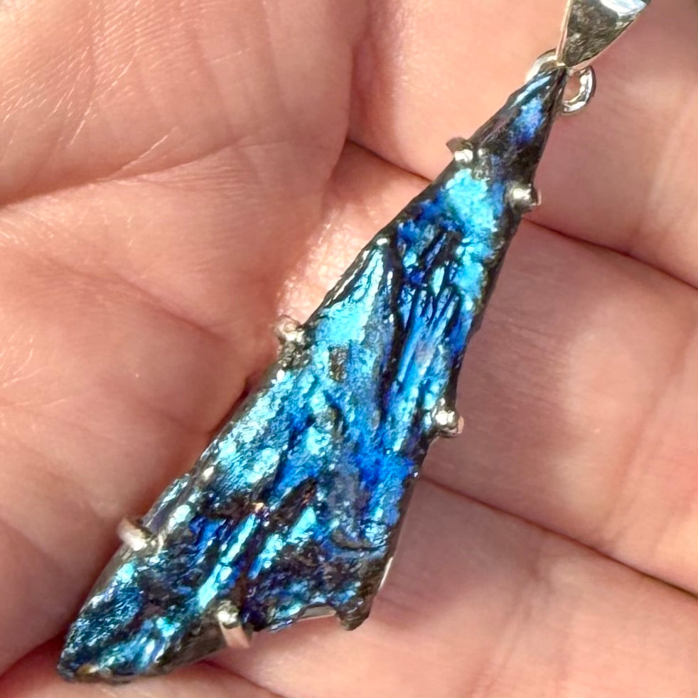 Rainbow Aura Kyanite begins as black kyanite that undergoes a superheating process where it is coated with metallic vapors from various different metallic coatings. The result is a beautiful rainbow iridescence. This stone contains all of the properties of kyanite as well as it’s own unique properties. This stone is very uplifting energetically while providing grounding energy emotionally.