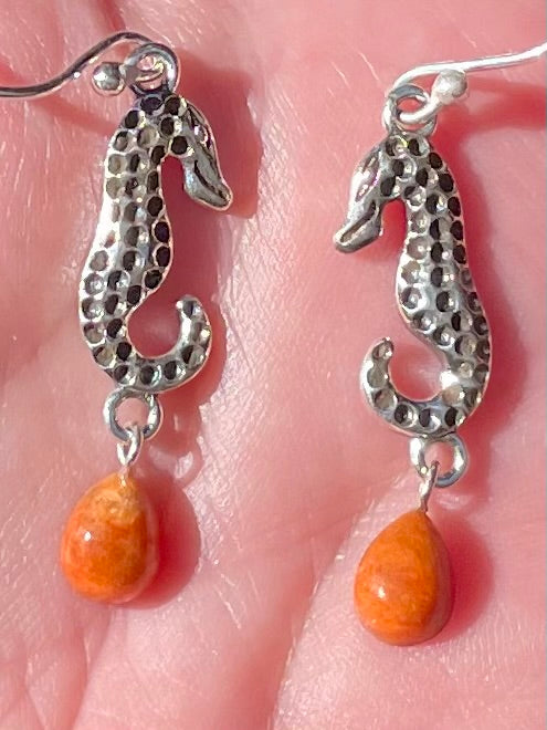 Coral Seahorse Earrings