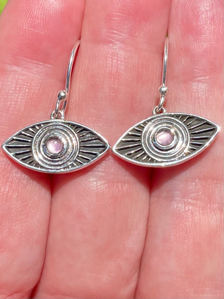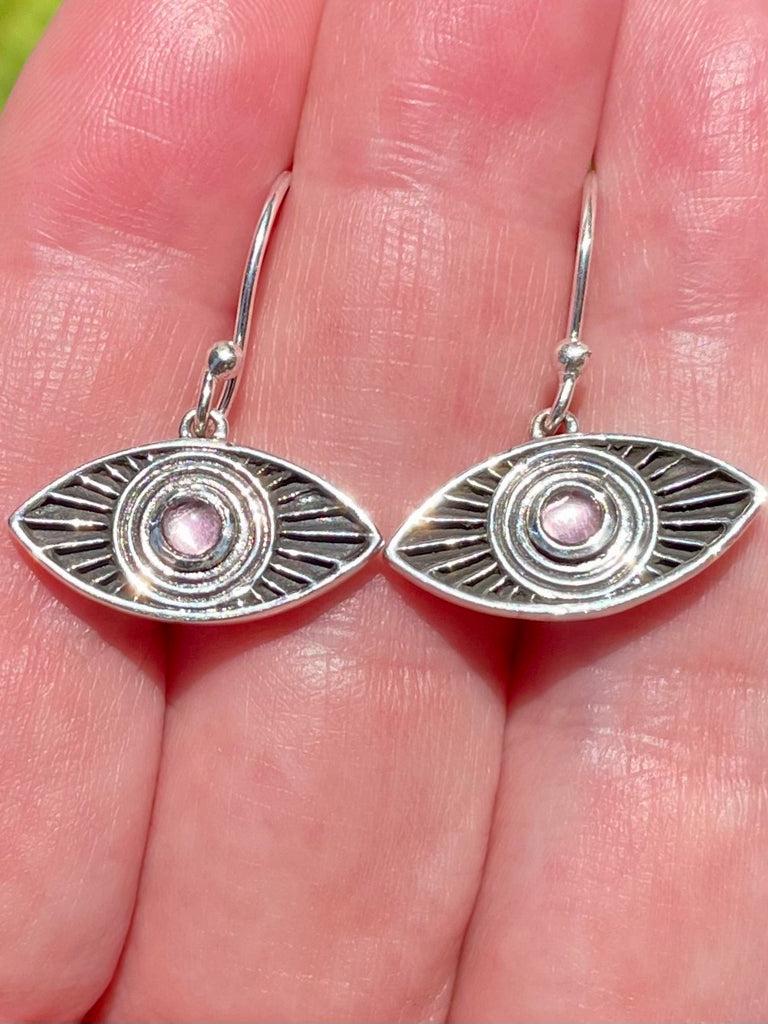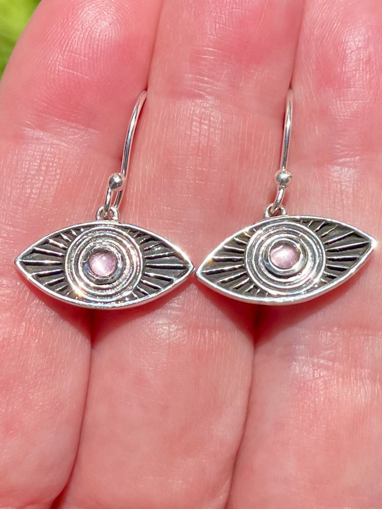 Evil Eye Pink Kunzite Earrings - Morganna’s Treasures