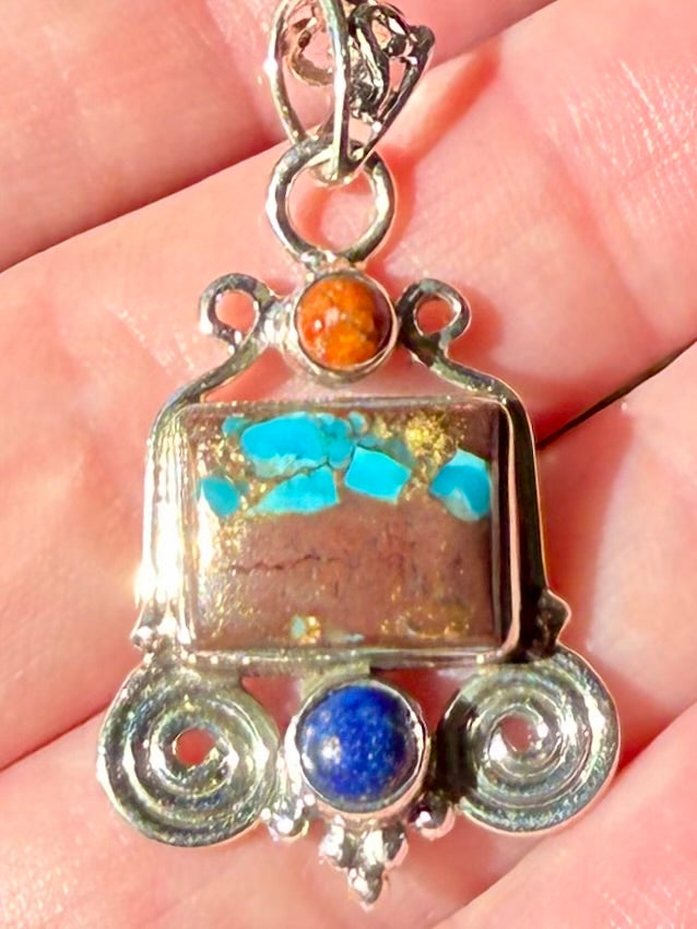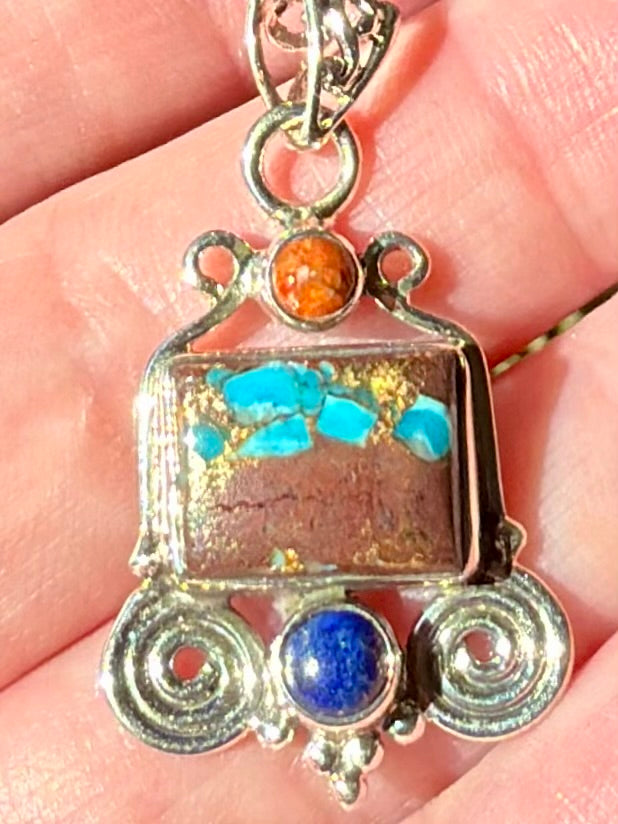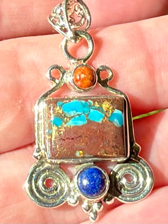 Basalt Turquoise, Red Jasper and Lapis Lazuli Pendant