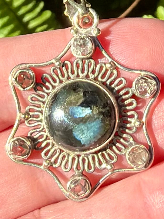 Larvikite (Black Moonstone) & Herkimer Diamond Pendant