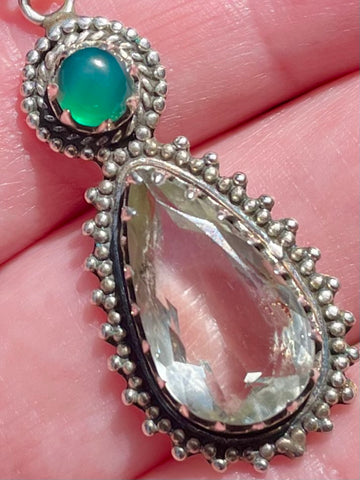 Sterling Silver pendant measures 1 and 5/8 inches long by 1 and 1/2 inches wide.