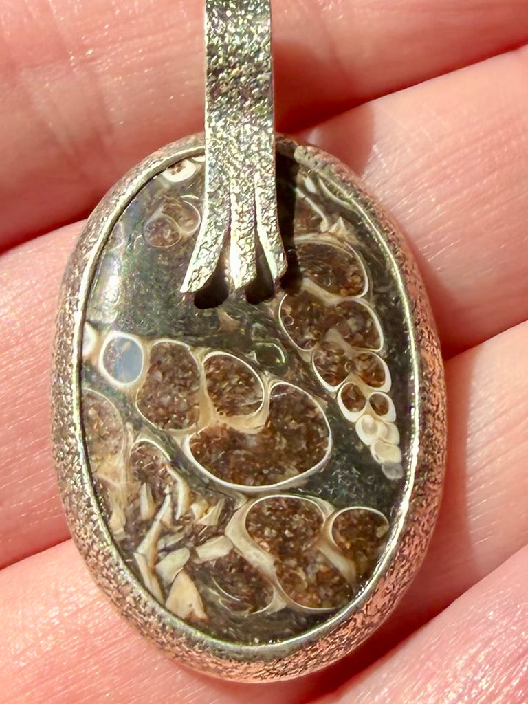 Turritella Agate is a stone of personal connection.  It allows the wearer to connect with one’s past and move on in a peaceful, healthy way.  It protects against danger and helps one to alleviate their fears.  It stabilizes the aura and eliminates negative thoughts and feelings.  This stone is also a powerful cleanser for the body and the mind.