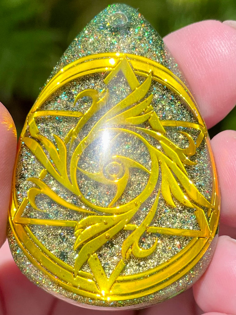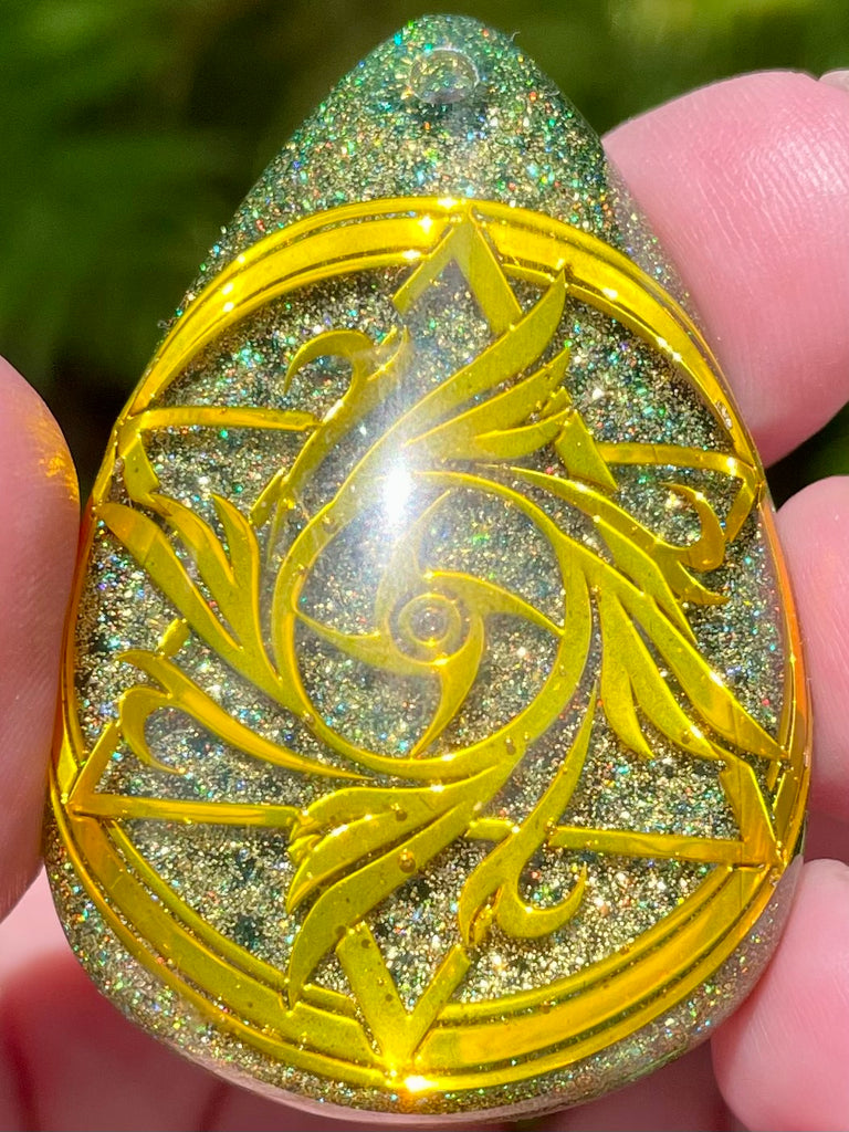 Orgonite Pendant measures 2 inches long by 1 and 1/2 inches wide.