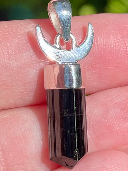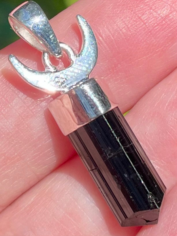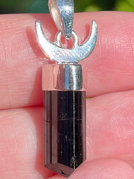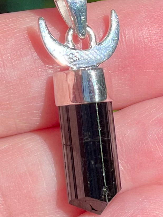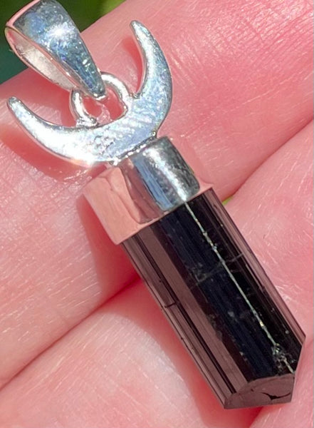 Crescent Moon Black Tourmaline Pendant