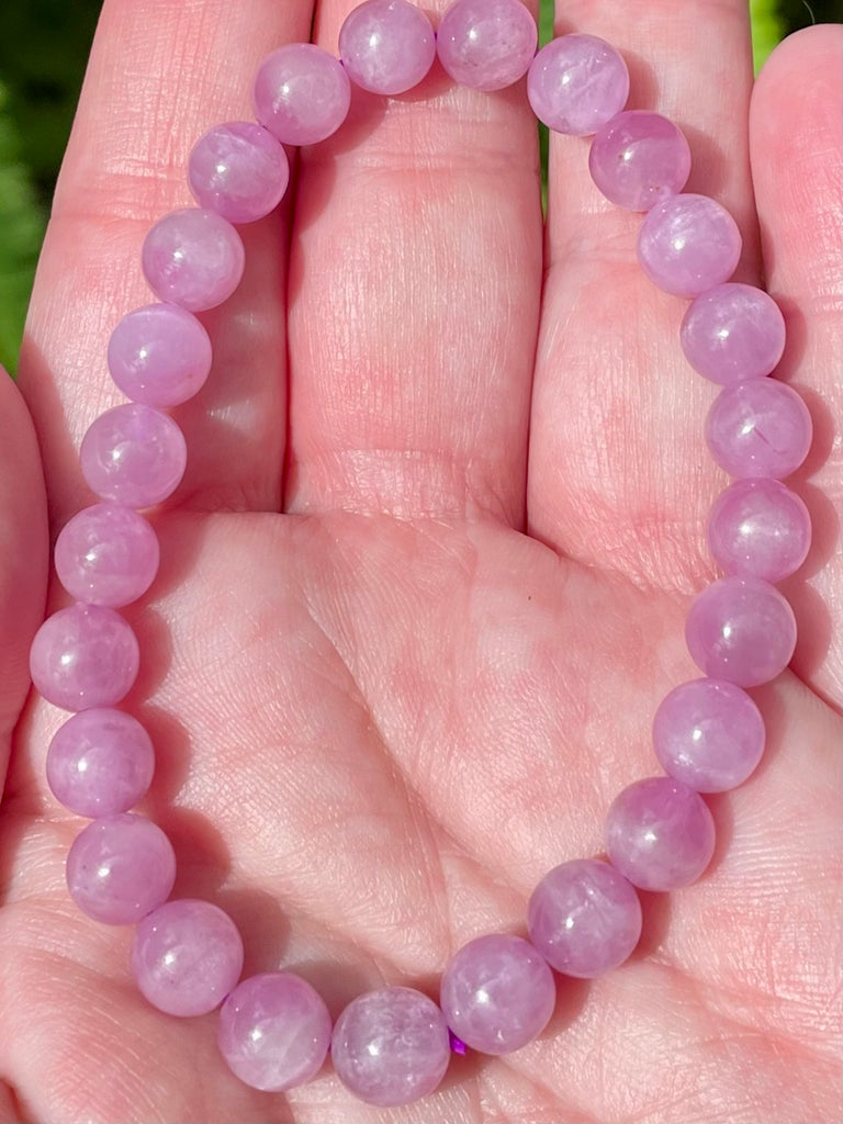 Kunzite is a highly spiritual stone that produces loving thought and action. It is a high vibrational stone that centers the wearer. This stone also enhances creativity and self-expression. Kunzite is a stone of romantic love, good for communication of love when you are nervous, as well as for healing heartaches. It is also a stone that helps you love yourself. This stone can clear the aura and removes negative energy from a room or environment.