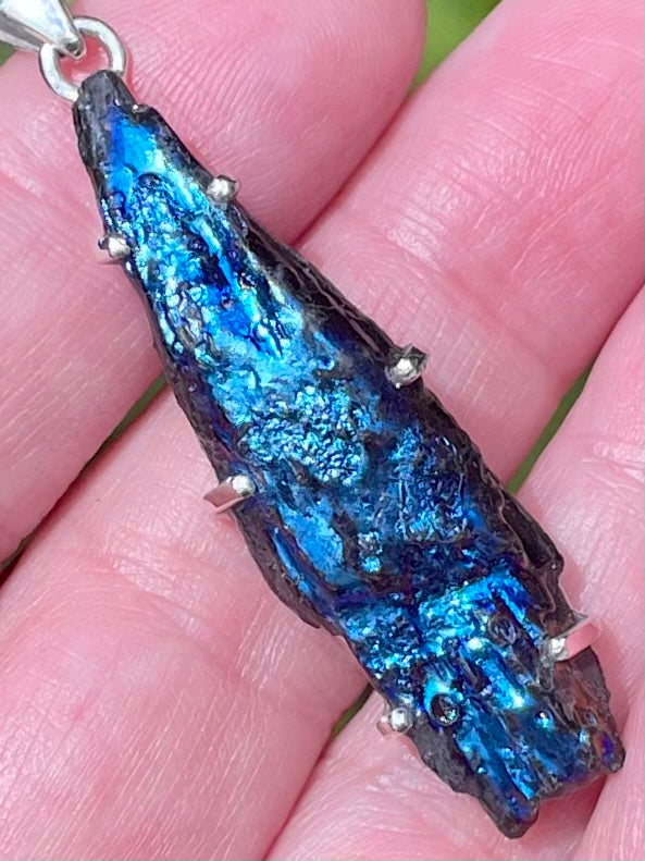 Rainbow Aura Kyanite begins as black kyanite that undergoes a superheating process where it is coated with metallic vapors from various different metallic coatings. The result is a beautiful rainbow iridescence. This stone contains all of the properties of kyanite as well as it’s own unique properties. This stone is very uplifting energetically while providing grounding energy emotionally.
